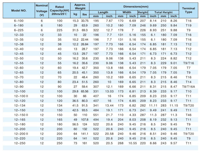 容量:33AH~250AH
